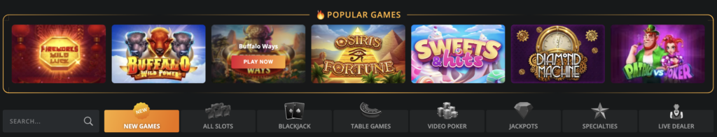 • Over 2,500 online slots: classic, video, mega-jackpot, and even crypto-exclusive games.